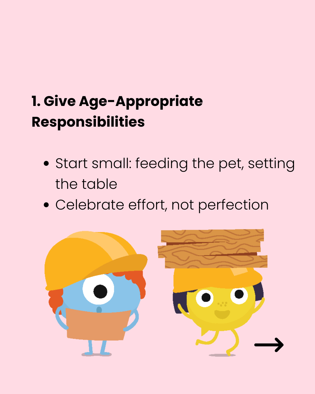 💡Parent tip: Start small. Assign one responsibility your child can handle and gradually add more.