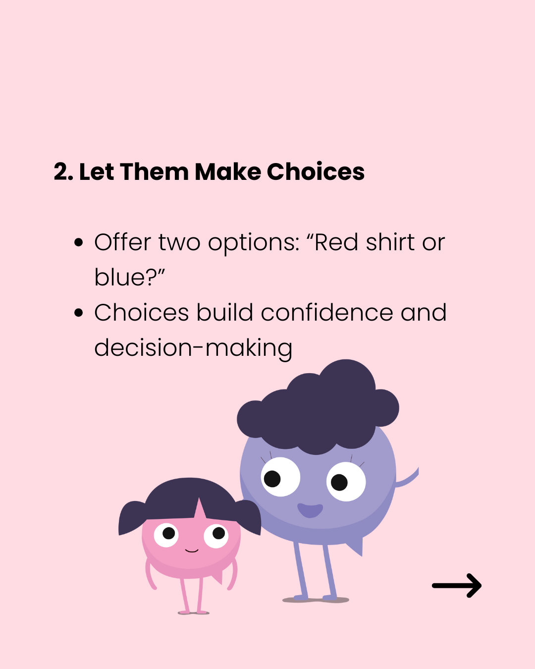 💡Parent tip: Try not to overwhelm your child with too many options and decisions each day. Stick to two or three clear choices.