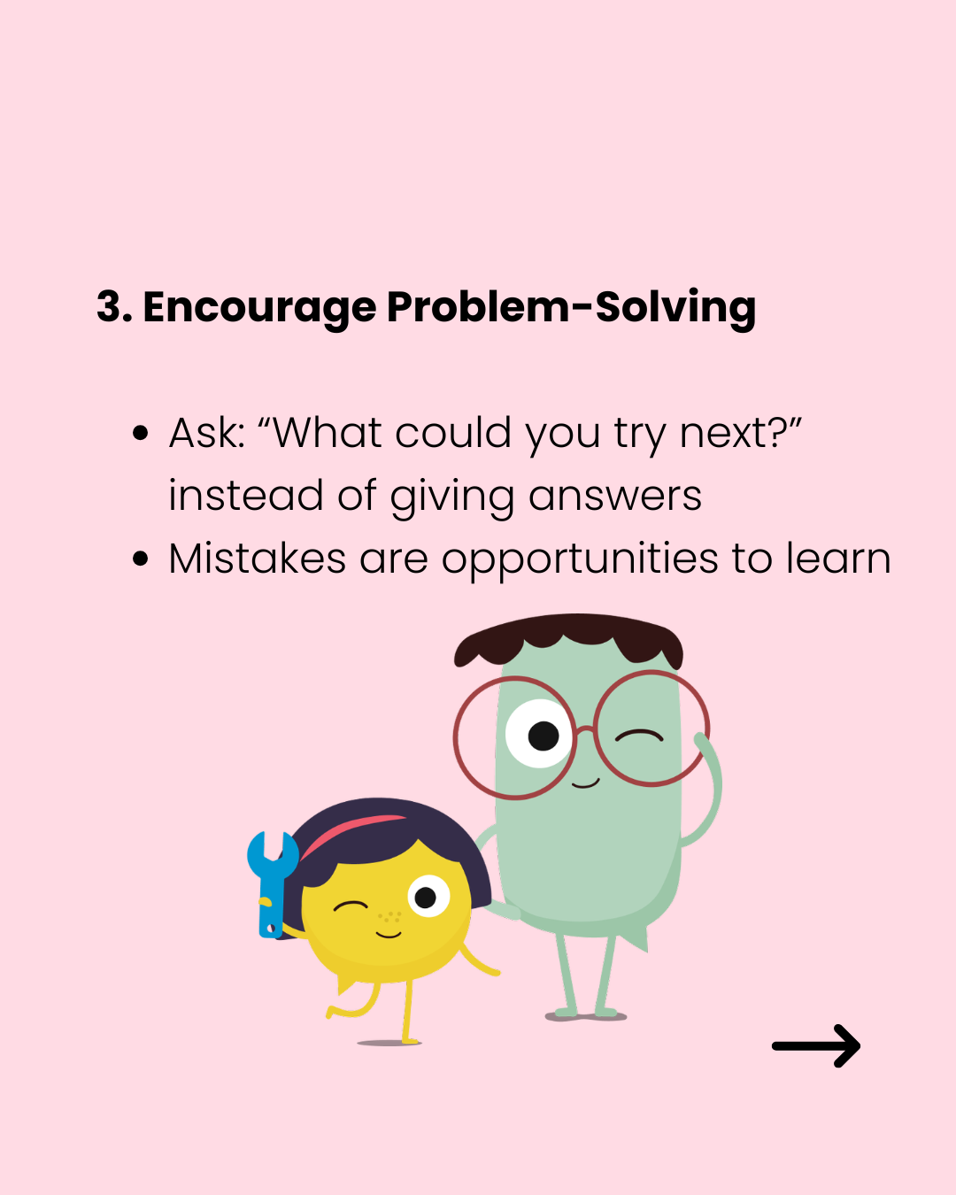 💡Parent tip: Ask open-ended questions, rather than giving immediate answers. Try, “What do you think we could try next?” instead of “This is what we should try next…”