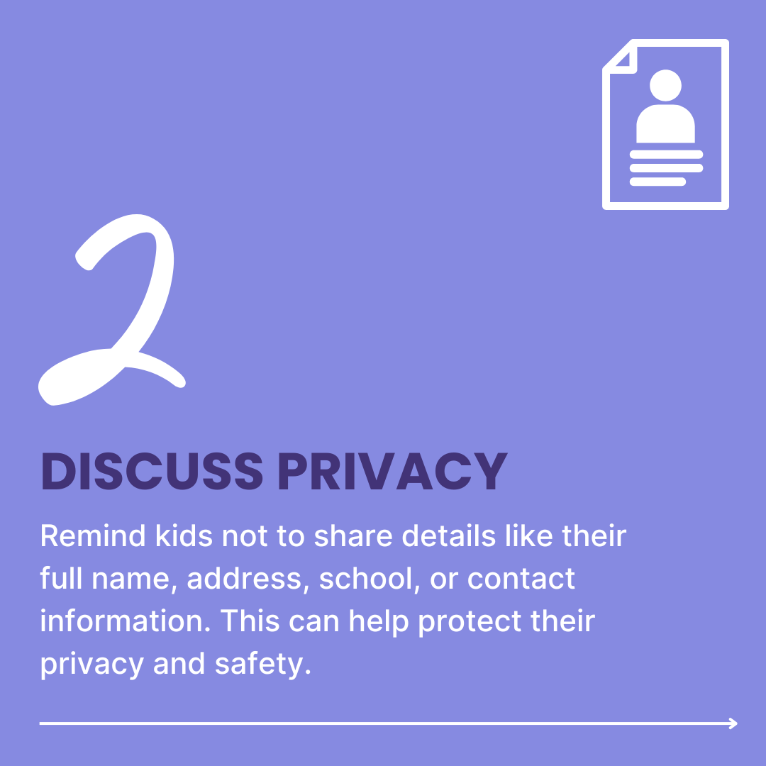 - Discuss privacy and data security: Explain what data privacy means by saying something like, "Data privacy is how personal details about you are handled and used. When you use ChatGPT and other apps, don’t share your name, address, school, number, or any other private things to protect yourself."