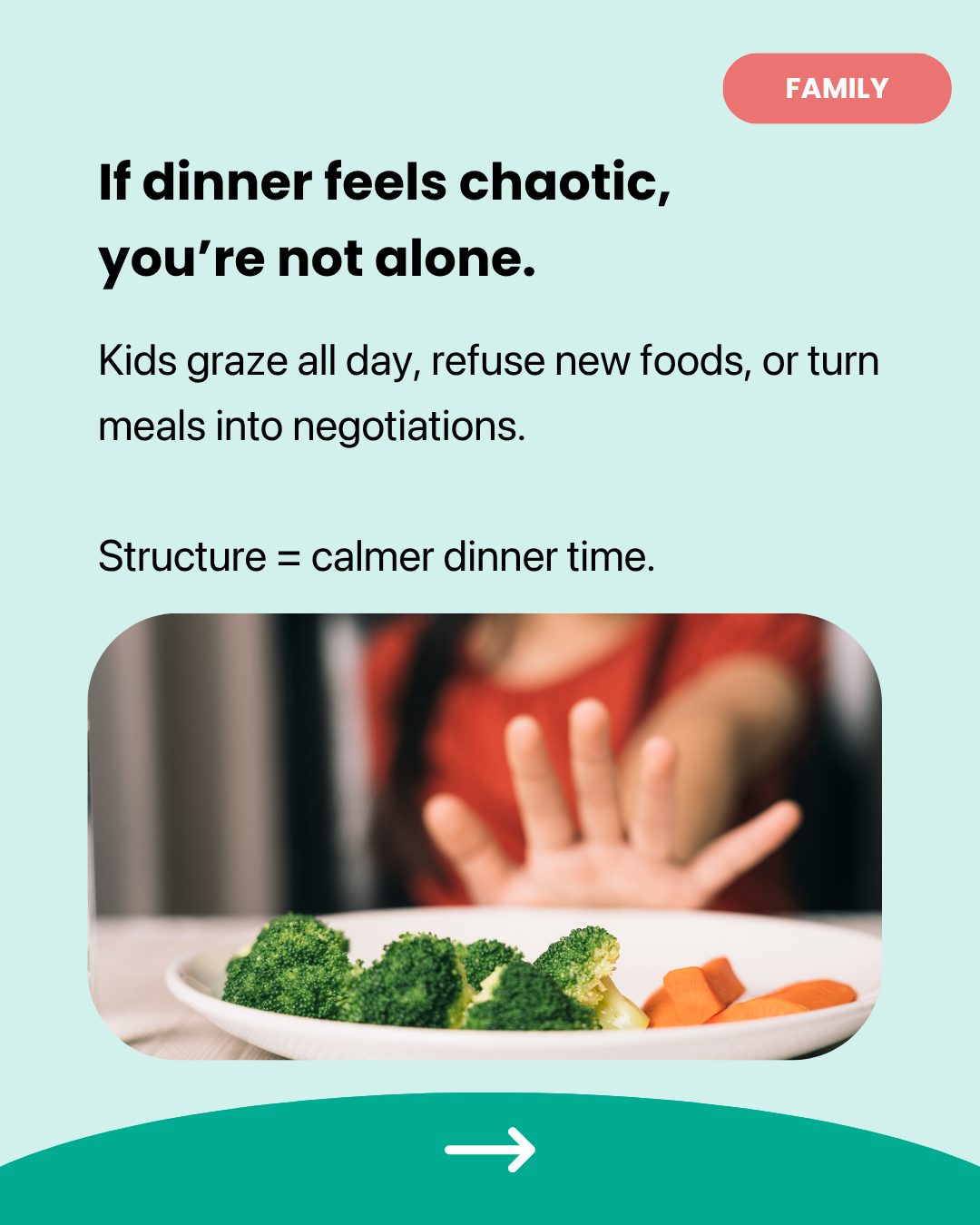 Mealtimes can quickly turn into a tug-o-war over snacks, veggies, or “just one more snack.” Without some structure, kids usually end up resisting healthy options when it’s time to sit down and eat.