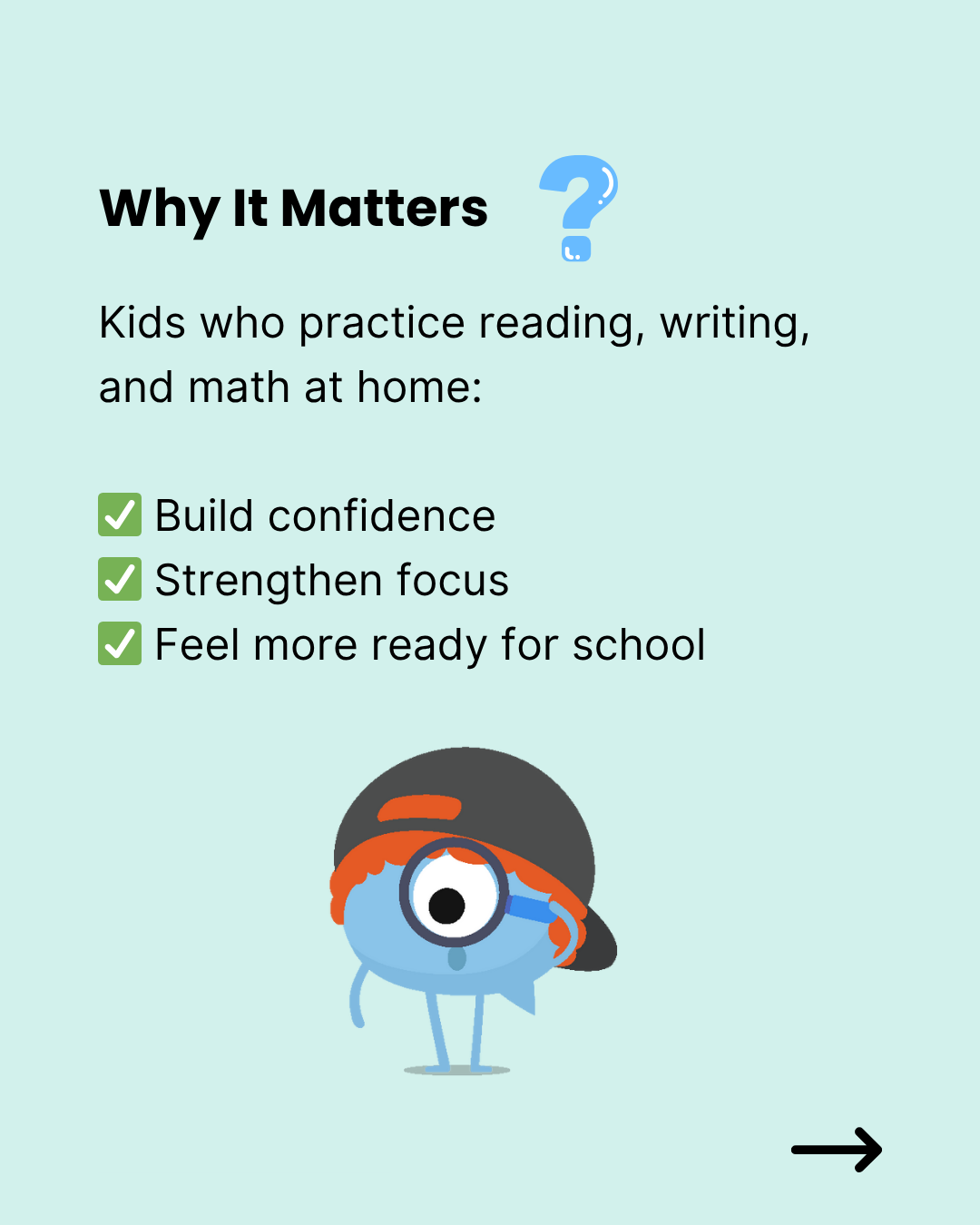 Kids who practice literacy and math basics outside of school can develop stronger skills, better focus, and more confidence in the classroom. Other benefits include: