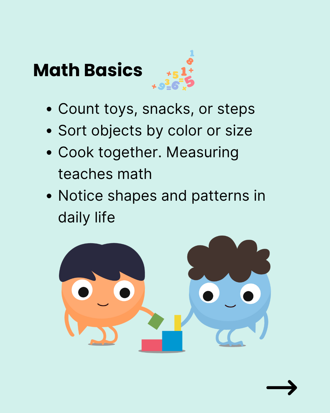Math is everywhere: in the kitchen, the playground and the grocery store. Simple activities bring numbers and patterns to life.