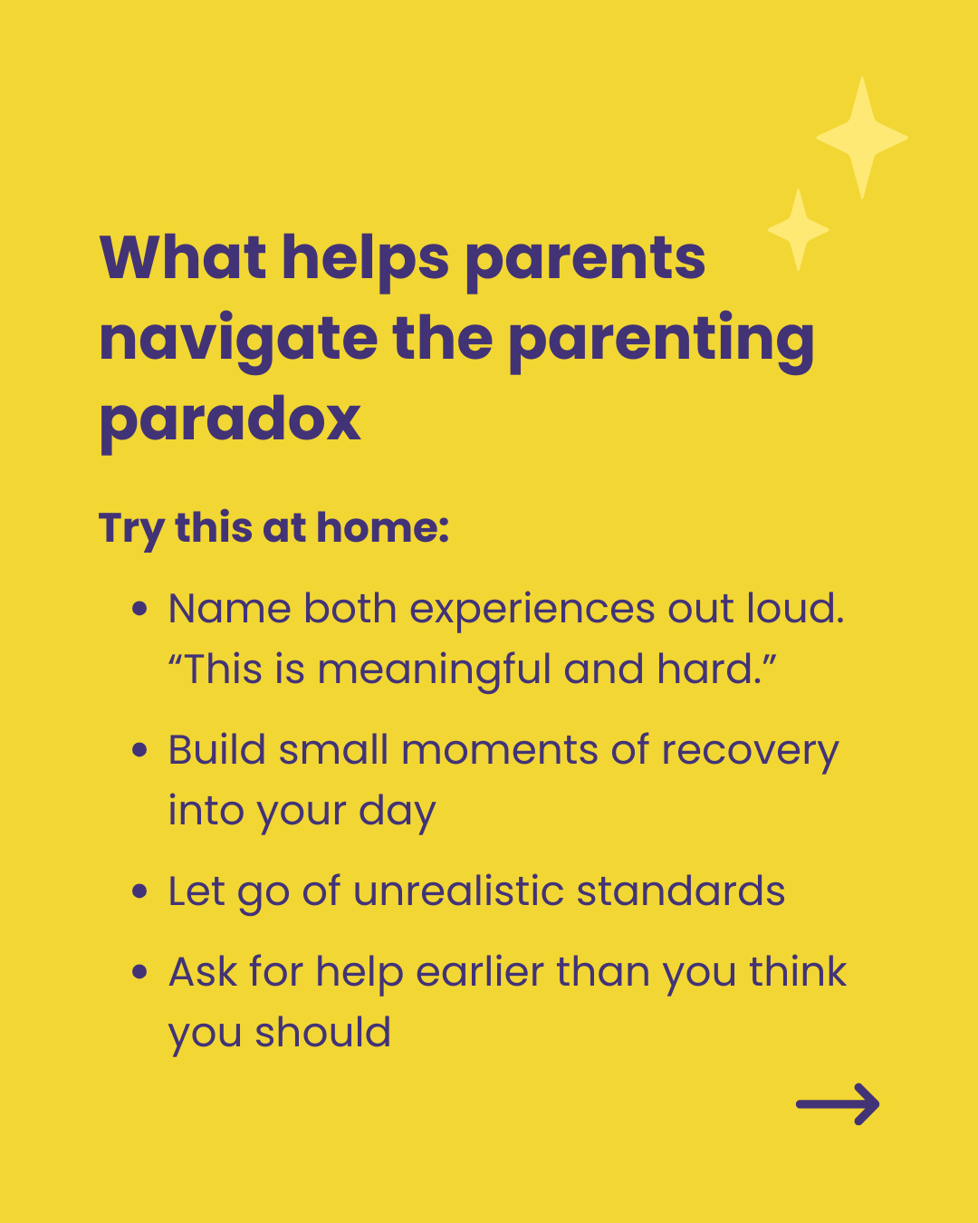 The goal is not to eliminate stress entirely. Parenting will always ask something of you. What helps is reducing unnecessary strain and increasing support