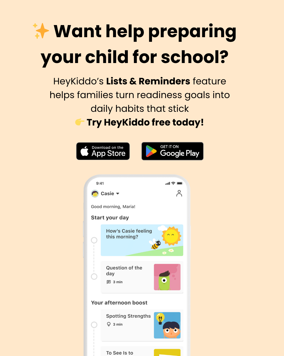 👉 Try the HeyKiddo App free today and support your child’s confidence as they take their first big step into school.