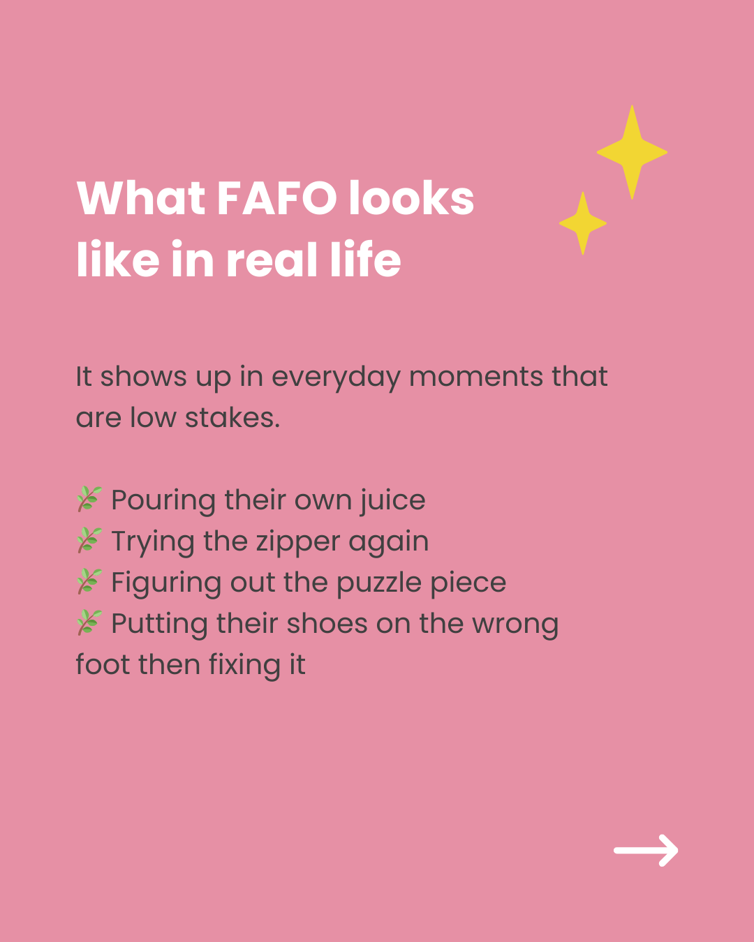 FAFO stands for “find out after a choice,” which refers to letting kids experience natural consequences when appropriate and safe to do so.