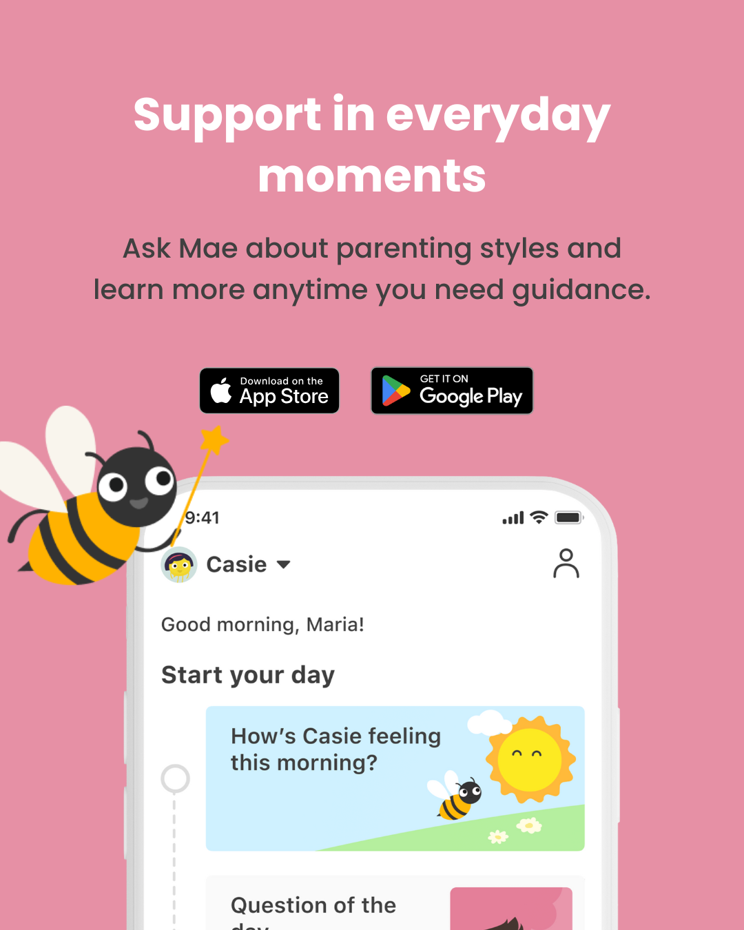 Parents stay nearby, steady and supportive while the child “finds out” what happens next.