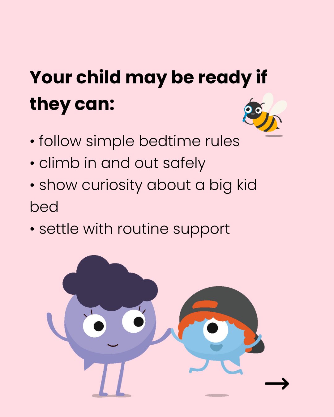 - Show curiosity about sleeping in a “big kid” bed
