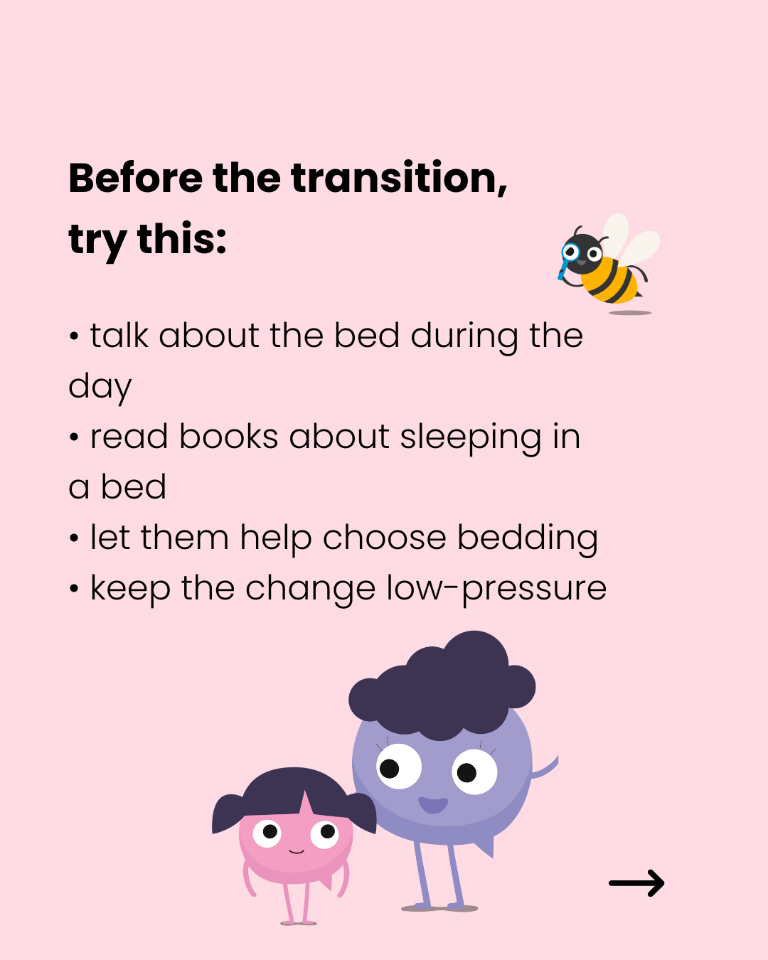 Try not to frame the bed as a reward or something they have to “earn”. The transition usually goes better when it feels calm and collaborative, not pressured.